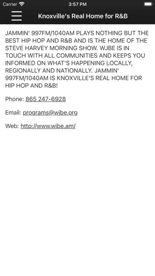 WJBE/JAMMIN'997fm/1040AM PLAYS NOTHING BUT THW BEST R&B AND IS THE HOME OF THE STEVE HARVEY MORNING SHOW. WJBE IS A HERITAGE STATION ,FIRST OWNED BY THE GODFATHER OF SOUL JAMES BROWN. WJBE/JAMMIN' 997fm/1040am is KNOXVILLE'S REAL HOME FOR R&B!