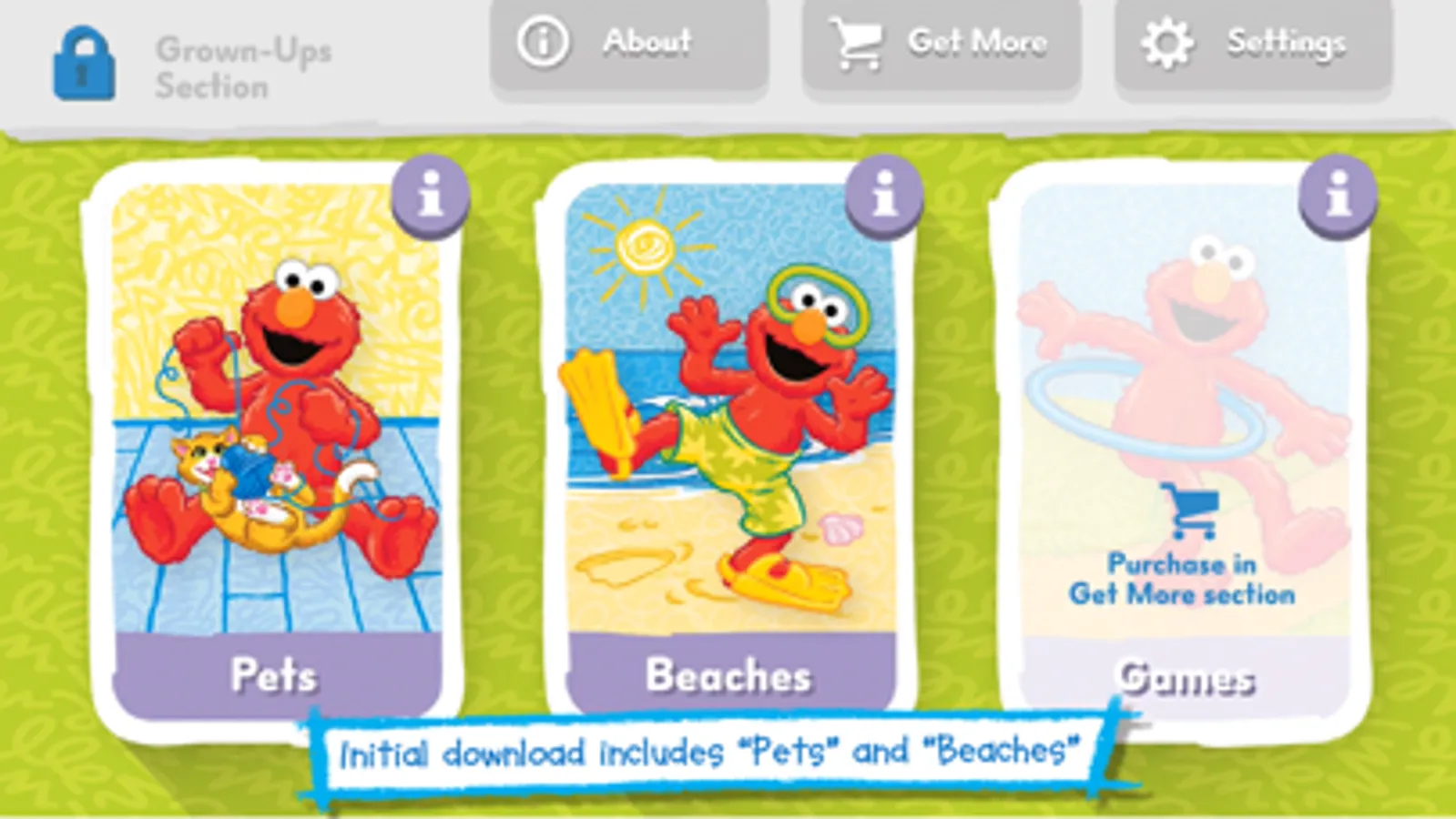 To get additional Elmo’s World and You appisodes, visit “Games” in the parent section of the app.
