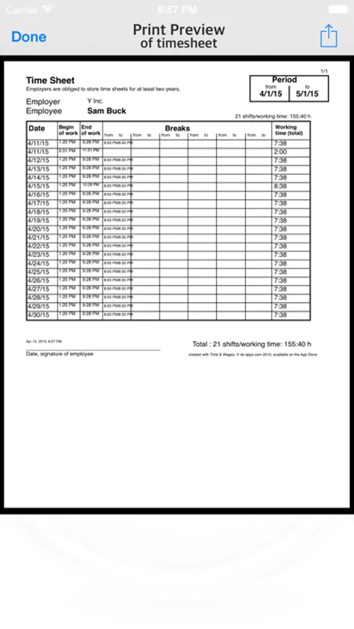 If your salary for a shift does not reach a minimum wage and you need to show 'clean' timesheets, this app can automatically adjust the breaks for a shift, to avoid further discussions.