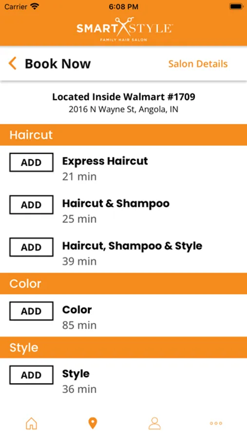 • Select “My Salon” so your favorite location shows up first (plus, easily change your preferred location)