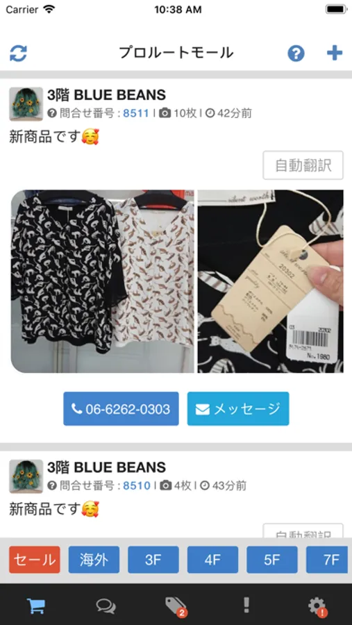気になった商品をメッセージで気軽にお問い合わせできます。