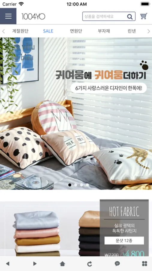 천싸요(1004YO)쇼핑몰 앱에서 한차원 높은 원단, 부자재의 가격비교, 전체 인기도, 오늘의 신상등을 기존 쇼핑몰 앱과 다른 똑똑한 서비스를 제공합니다.