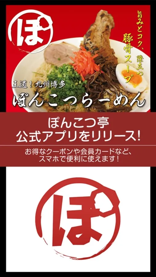 九州博多らーめん「ぽんこつ亭」の公式アプリをリリースしました!