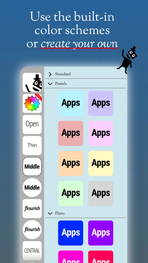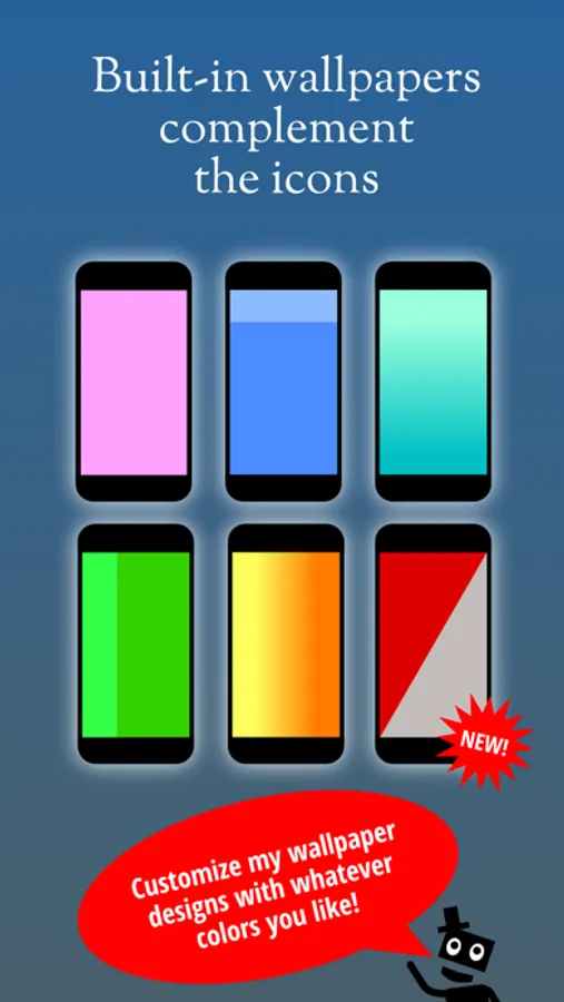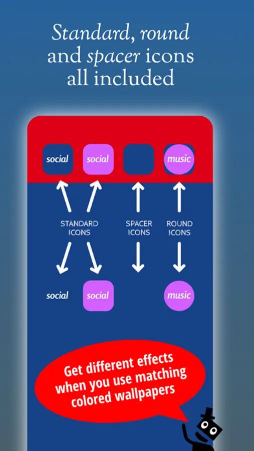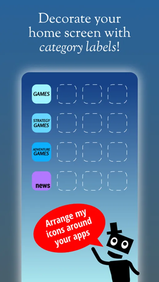 Mister Icon helps you keep a neat and tidy home screen by providing a range of decorative text labels and matching wallpapers.