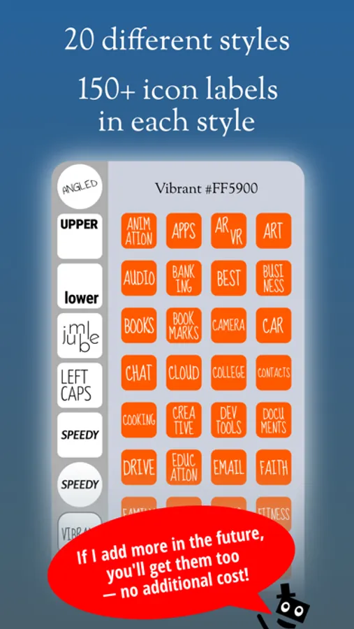 There are more than 150 icon labels to choose from, and each icon is available in 20 different styles, including several 'round' options.