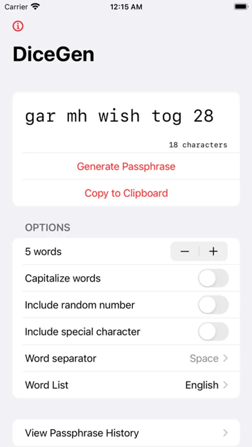 - Copy passphrase to clipboard. Saved passphrases are automatically saved to the passphrase history.