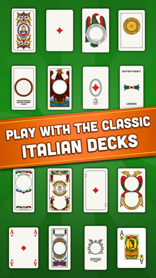 - Choose your deck: Rubamazzo got all the original Italian regional decks (Napoletane, Siciliane, Piacentine, Piemontesi, Triestine and more), in high resolution that will look astonishing on your iPhone and iPad. Or you can play with the classic Poker cards (French)!
