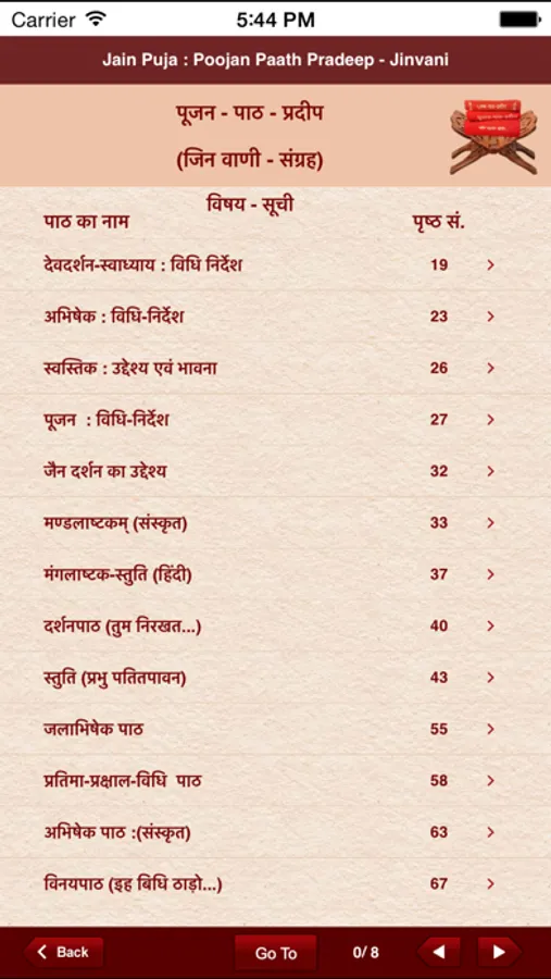 This app has complete Jainvani - Poojan Path Pradeep. You can read all Jain Stuti, Stavan. Mangal Aarati and bhajans on this app. Das Lakshana Parva and Bhaktambar Stotra are also featured here. Children can also recite major Jain Bhajans and Aartis in English. This app has Jain panchang or calendar also.