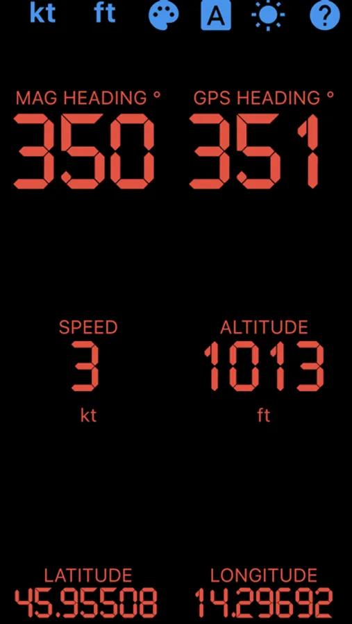 The purpose of the application is to show the most important location and orientation parameters as precisely as possible and in the most noticeable visual form. To keep things simple, there are two modes of information display - day and night. Switch between those using the button in the upper right corner.