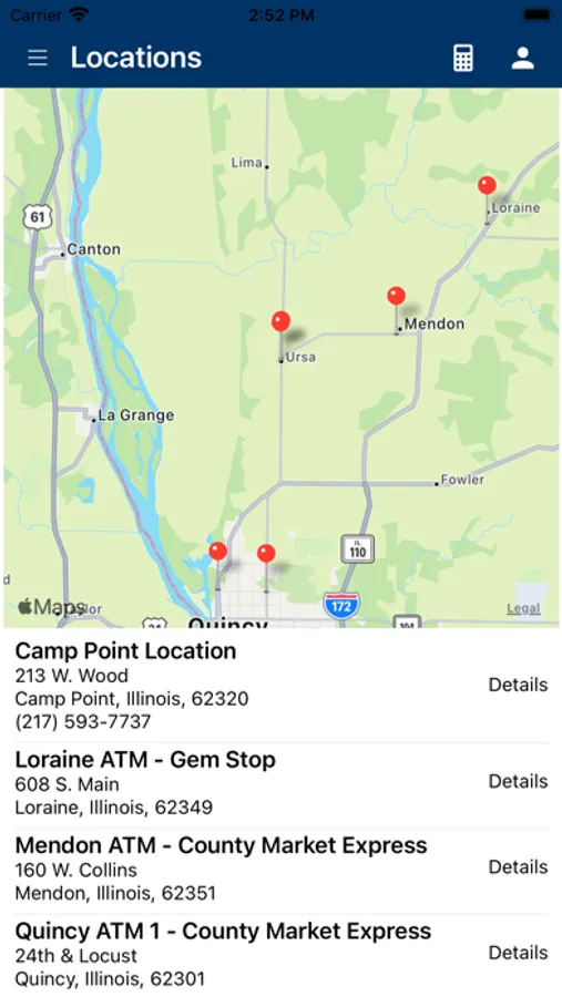 • Find our ATMs and Banking Centers using the GPS system provided by your iPhone.***