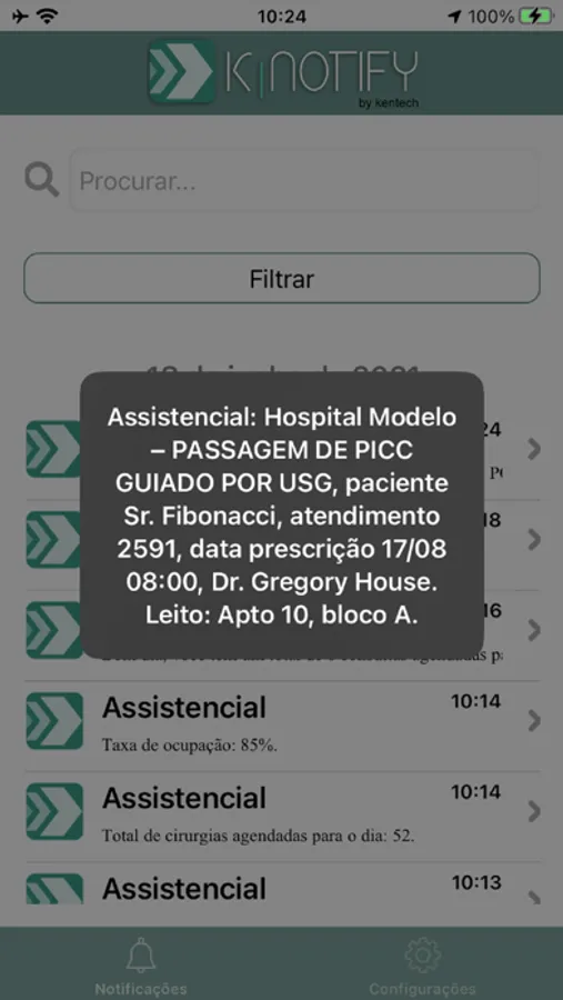 Casos de uso: envio de indicadores estratégicos; eventos sentinela; paciente VIP; gestão de produção; pendências no atendimento; controle de alta; comunicação com clientes externos e internos; gestão de leitos; indicadores assistenciais; pendências de guias; alertas centro cirúrgico (acompanhantes, médicos e circulantes); comunicação com o corpo clínico; comunicação com pacientes (agendamentos, laudos, notícias); controle de fluxos; tarefas pendentes; gestão de estoques e compras; SAC.