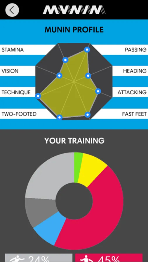 The MuninPlay app for football training by Munin Sports tracks your technical abilities in football. Measure your dribbling technique, passes, headers and much more. Test your abilities to pass and receive the ball, control the ball in the air and make perfect finishes.