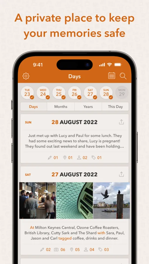Introducing Momento — the smart private diary/journal app that helps you capture and collect memories to search, explore, relive and share your life story.
