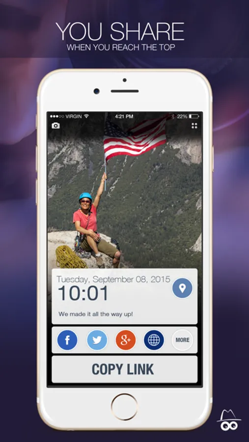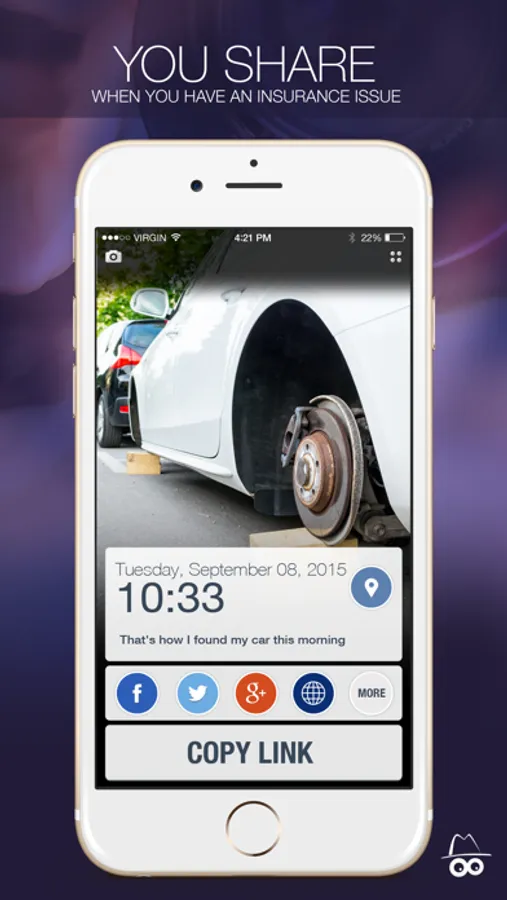 Just snap a picture in Proofy - the app will check the date and time when the photo was taken and verify that it wasn’t manipulated in any way. Then you can share it straight to Facebook, Twitter and Google+ or simply copy and paste the link to your Proofy. Everyone will have to trust you!