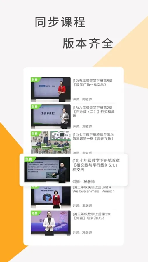 3.同步课堂:包含中小学、初高中所有课程,覆盖全国各地区不同版本。如:人教版、鲁教版、苏教版等。