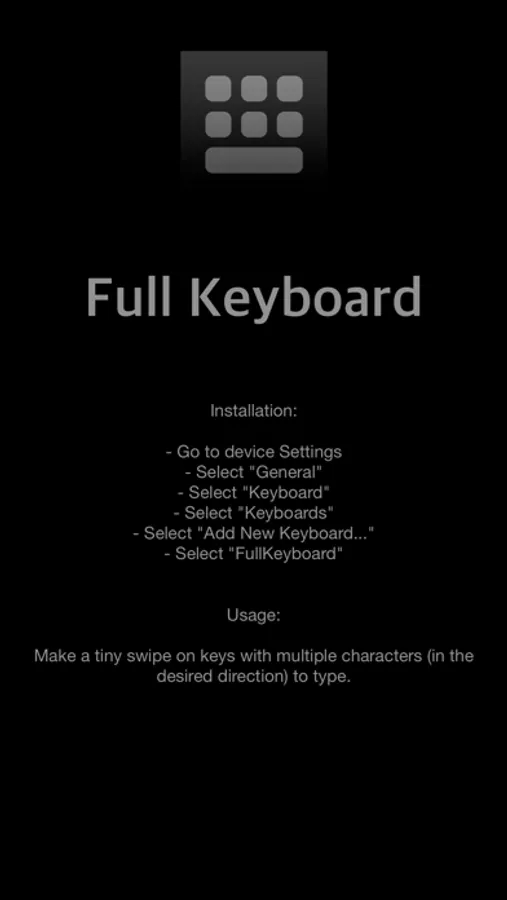 Stop using the limiting iOS default keyboard! Use Full Keyboard now and type with a complete keyboard!