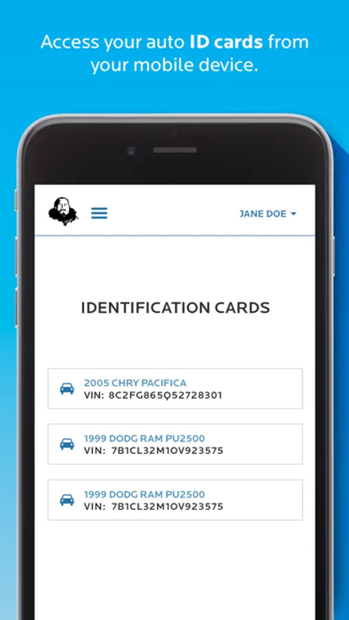 • A digital copy of the ID card for each vehicle on your personal auto policy (available by signing in with your MyAccount profile)