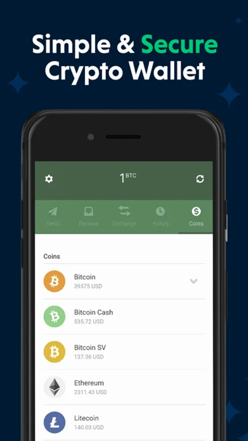 The Coin Wallet is easy for everyone, from crypto wallet beginners to seasoned bitcoin wallet experts. You'll see how easy it is to exchange, sell, and buy any cryptocurrency in your bitcoin wallet.