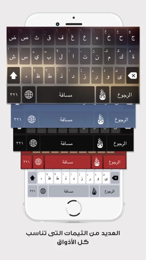 ● نحن نعلم ان كل منا له ذوق في الألوان ولهذا اضفنا اكثر من 30 ثيم مميز ويمكنك التنقل بينهم بسهولة بدون الخروج من لوحة المفاتيح