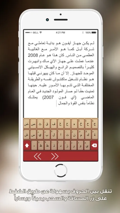 ● انتقل بين الحروف عن طريق الضغط الطويل على زر المسافة ثم السحب يميناً او يساراً