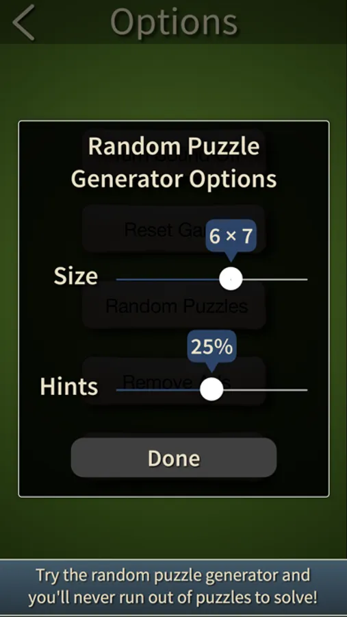 You can also try the new random puzzle generator. You specify the size and the number of hints, and it generates a brand new puzzle, just for you! You'll never run out of new puzzles to play!