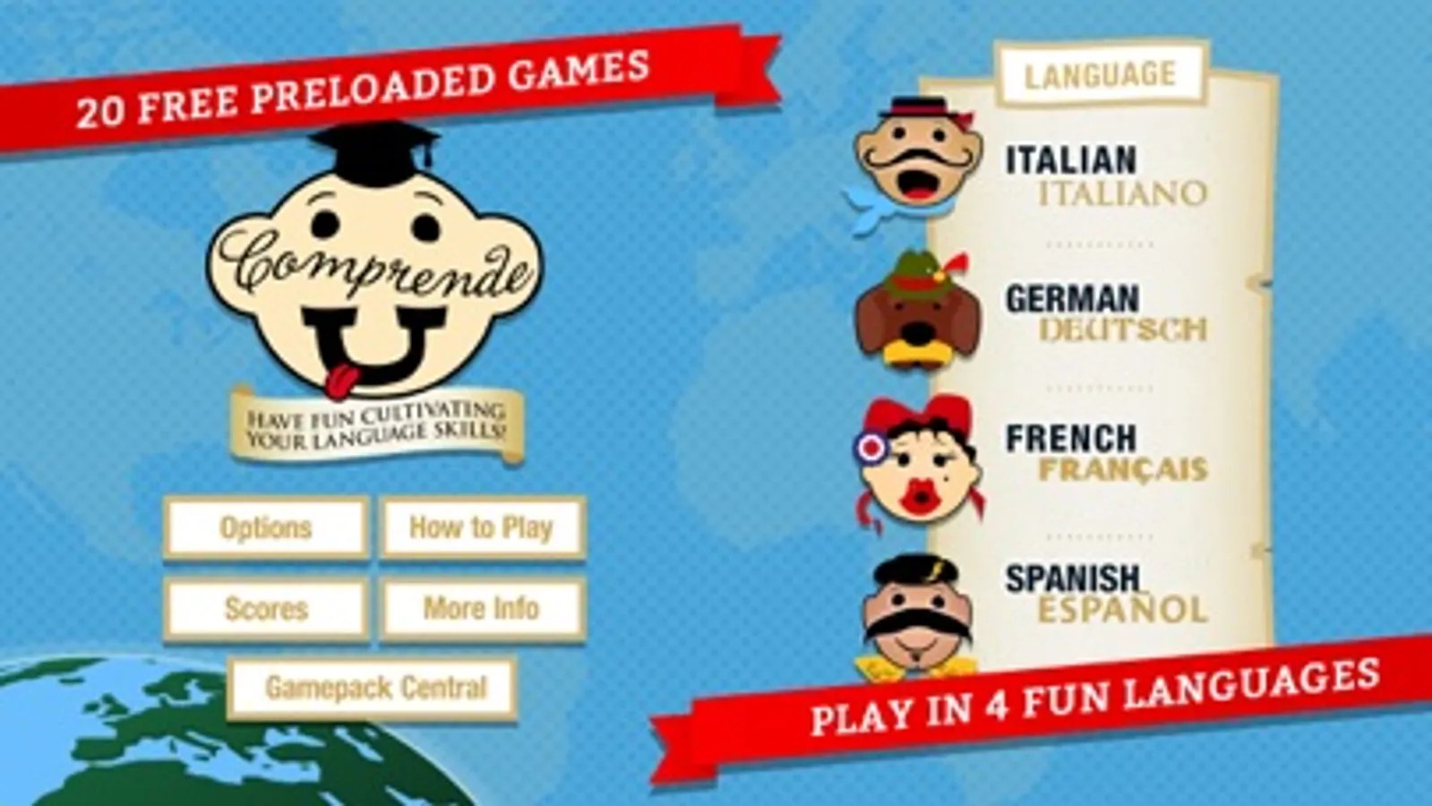 Play Comprende-U, the all-new twist on trivia with an Old World flair - fun with French, German, Italian or Spanish.