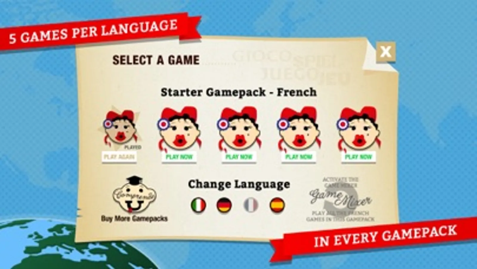 —The Game Mixer activation when you complete a gamepack, mixing up all the games in a language and adding another challenge