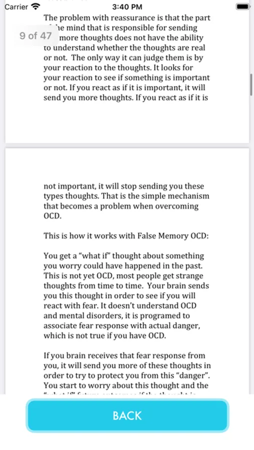 This app contains a False Memory OCD Recovery E-book formatted specifically to fit the iPhone screen and audio version of the same book read by the author Ali Greymond. It includes a test to check if the thought is OCD. It also contains podcasts and articles on getting over OCD. The information written in this book will show you how to overcome Obsessive Compulsive Disorder once and for all.