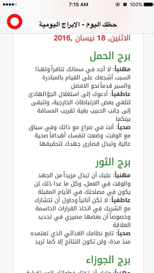 هذا التطبيق الشيق يقدم لك وبشكل دائم المعلومات عن برجك اليومي، حظك، الهدايا التي تلائم برجك، الحب في برجك، مشاهير برجك، قراءة الكف, تفسير الأحلام لإبن سيرين والمزيد المزيد...