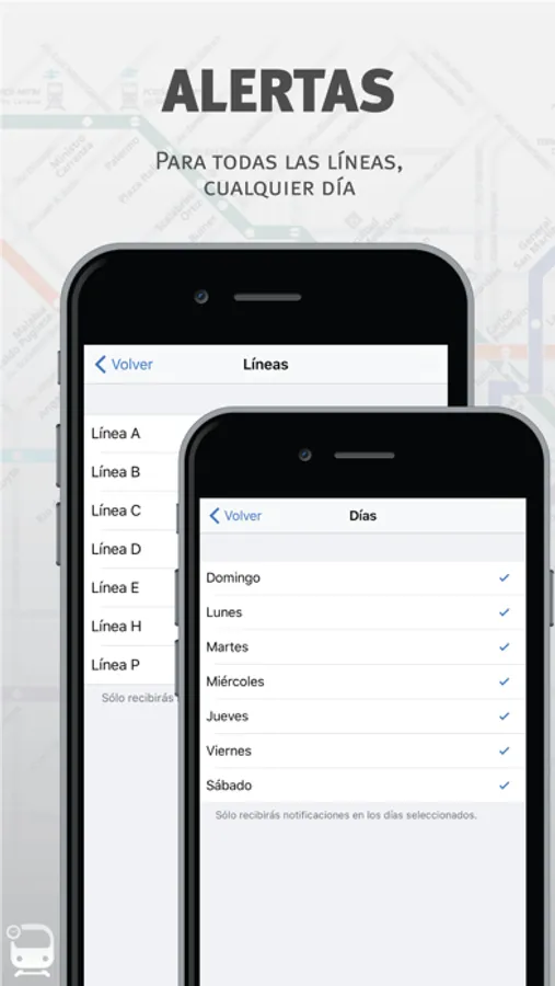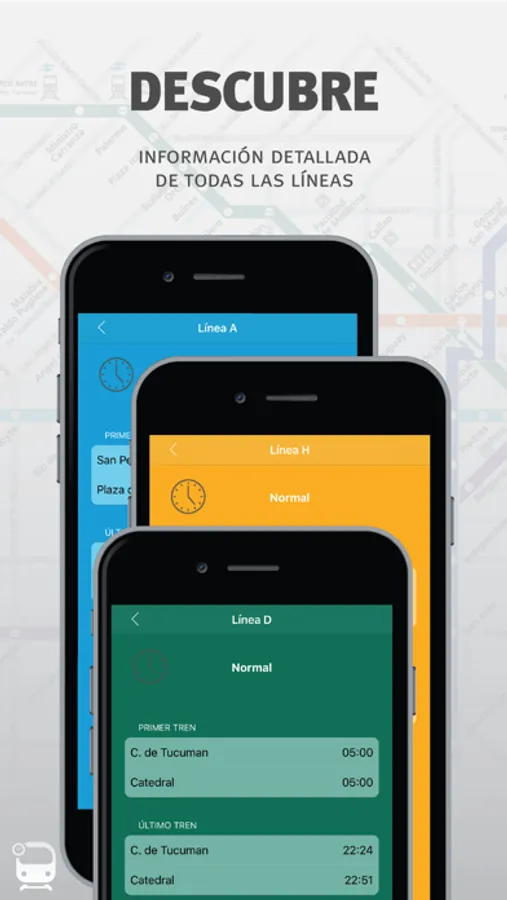 • All the Buenos Aires subway and metro lines (A, B, C, D, E, H, P).-