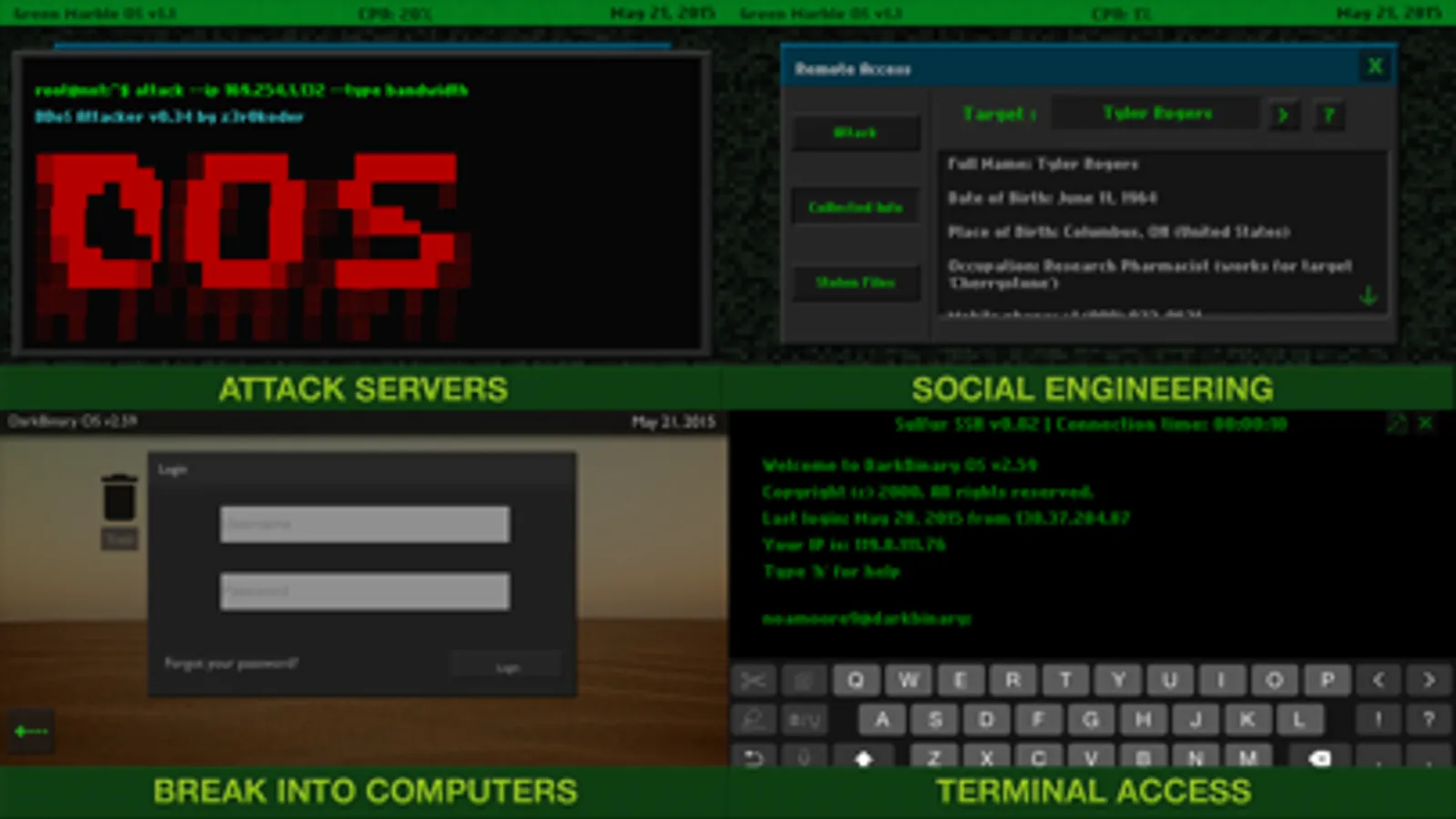 ● Extensive Hacking Simulator (Social Engineering, Virus Lab, etc.)