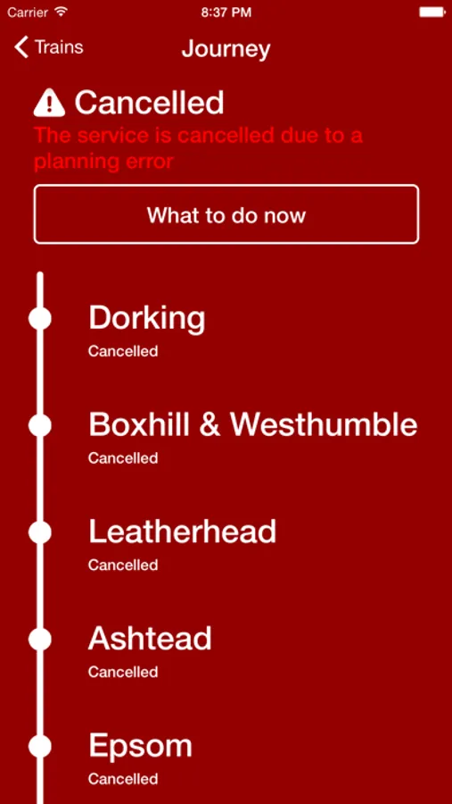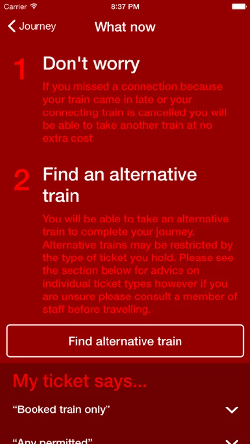 - Missed trains: Missed a train? Don't worry, we'll detect that too and offer you help on advice on what to do to reach your destination as soon as possible.