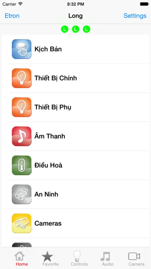 Etron Smarthome is application to control everything in a modern house : lighting, curtain, music, security, camera, access controls, water pump, air conditioner... by Leviton/Etron controller.