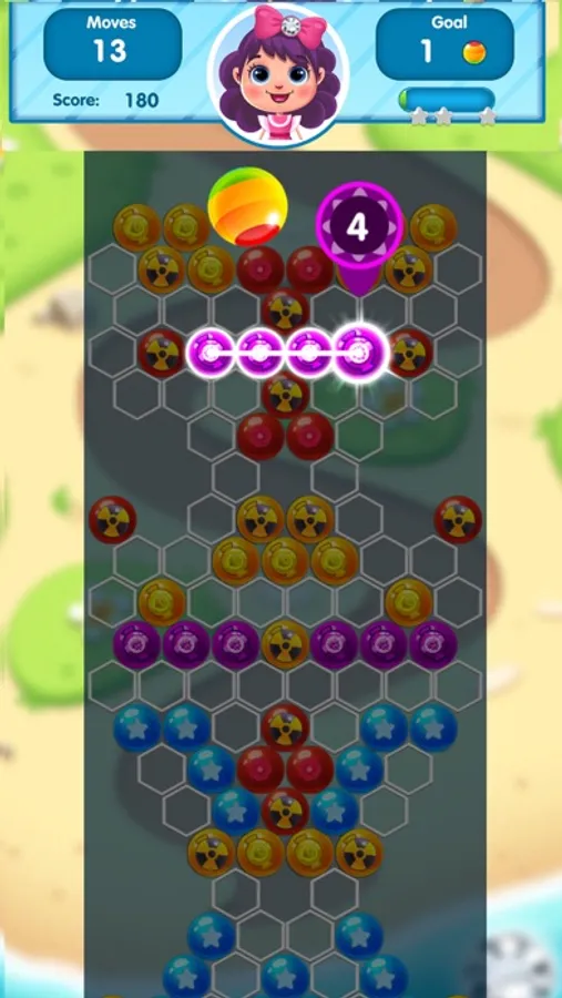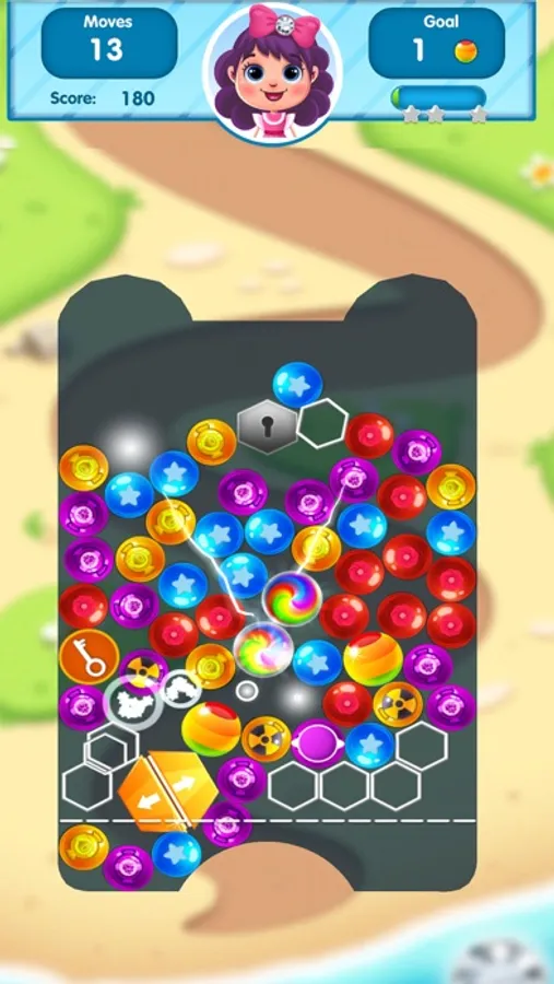 Each level has a target to atchive the more bubbles you clear in single move the more score you get, clear all matching bubbles to move to next level,