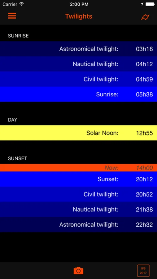 Heliosy application tracks sun position for today or any other given day, at your current location or at any custom location.