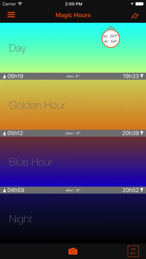 - Magic: an immediate access to some magic moments like 'golden hour' or 'blue hour'