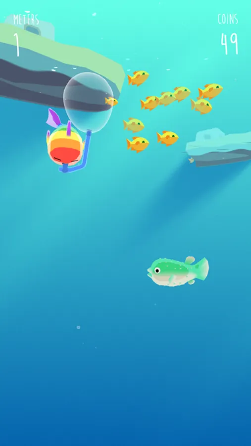 * Pick up bubbles to stay alive.