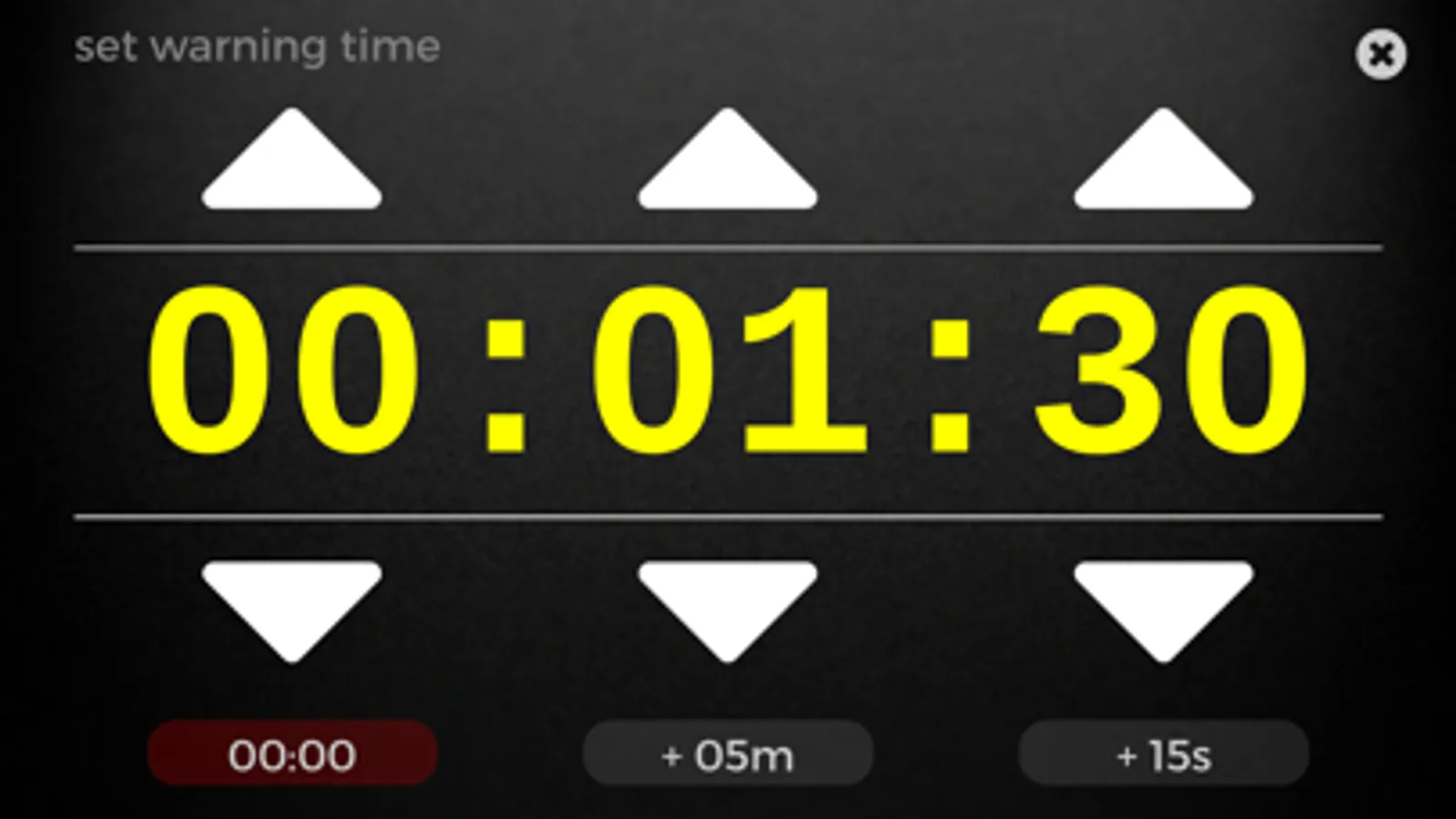 In case you need more warning times, up to 3 customizable warnings are available. Now you can make sure you have enough time for a wrap-up/ conclusion and the Q&A. In case you do go overtime, overtime mode will let you know and shows you by how much.