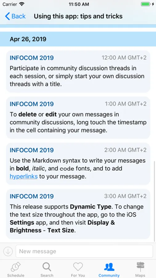 * Participate in community discussions, organized in discussion threads for each session
