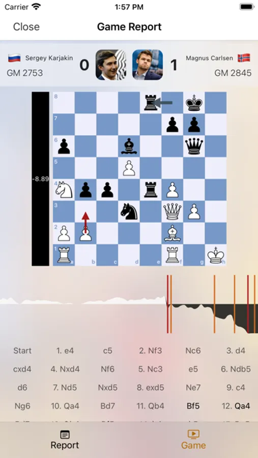 This app allows you to navigate through live and recent chess tournaments at the Grand Master level so that you can stay up to date on each round and each game.
