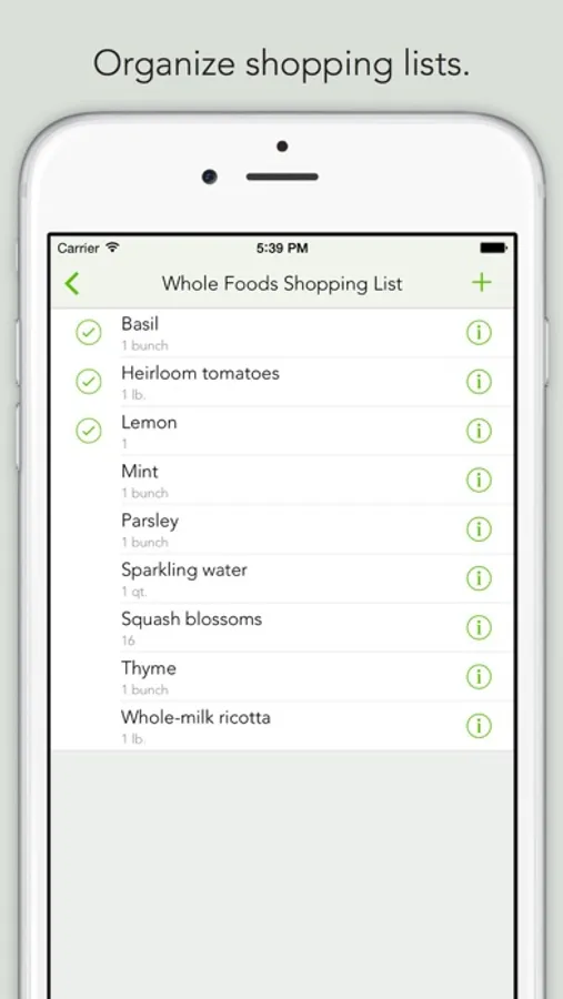 ‣ Create shopping lists: Add items to an unlimited number of shopping lists, organized by store; check off each item as you get it.