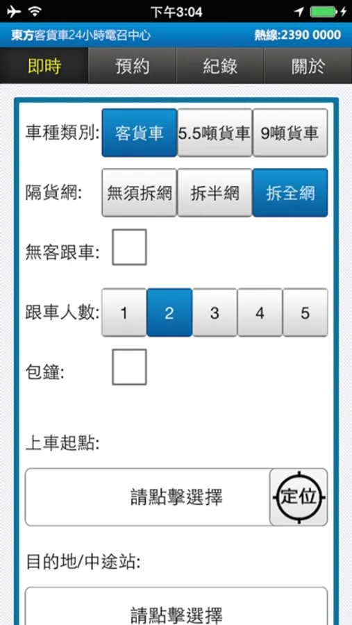 東方客貨車24小時電召中心-乘客版