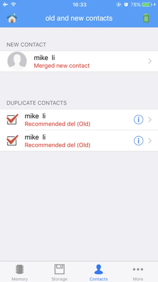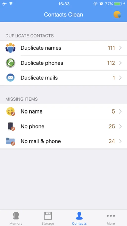 This app easily helps you detect and merge duplicate contacts, remove contacts without name or email.