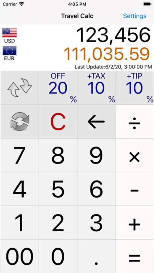 - OFF/TAX/TIP percent buttons will help you perform common calculation tasks while traveling around the world.