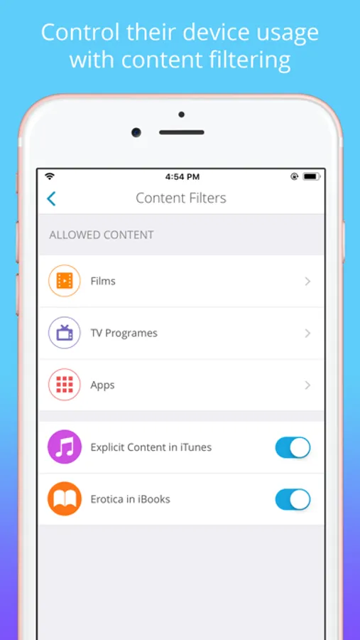 Block mature and adult Films, TV shows and apps on your children's iOS devices, including explicit content on iTunes and adult fiction on the iBooks store.