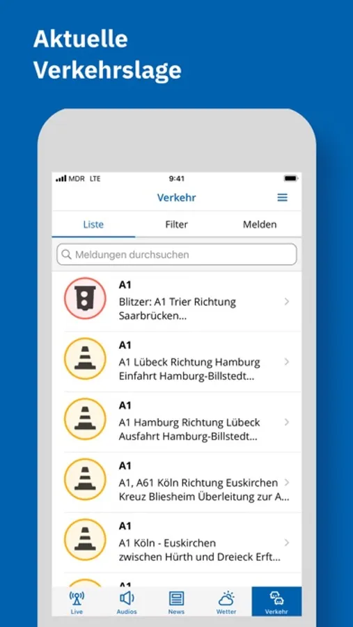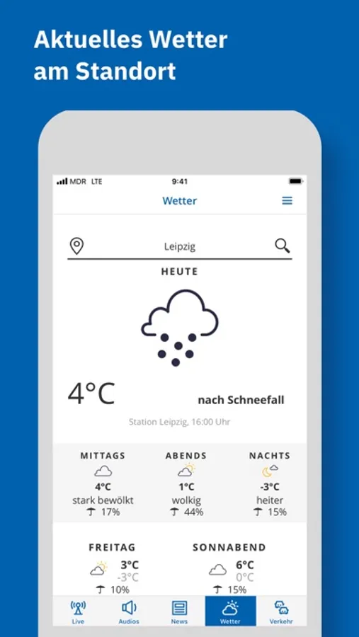 In der App finden Sie außerdem ausgewählte Filme zum Hören sowie Wetter- und Verkehrsinformationen. Diese sind an Ihre Umgebung angepasst - wenn Sie der App gestatten, Ihren aktuellen Ort zu verwenden.