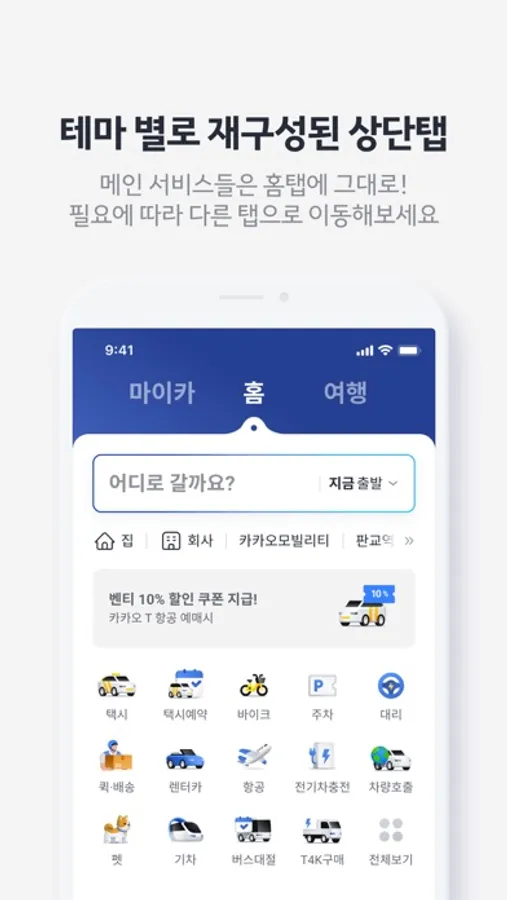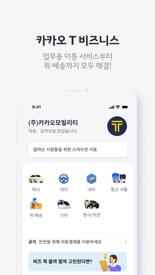Kakao T innovates our lives to become more comfortable, fun, and valuable, without any concerns on mobility.