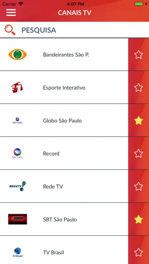 • Possível marcar como favorito / favorita um canal para encontrá-lo muito mais rápido
