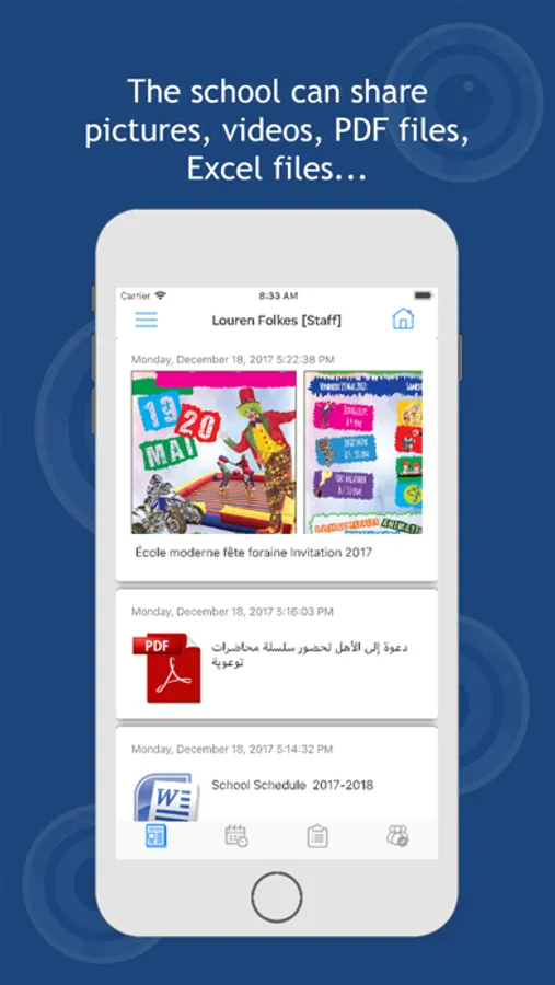 EYEschool is a new concept application initiated by EYEWEB s.a.r.l offering schools a channeled communication with Parents, Students, and Staff. EYEschool offers a one-way notification between School Administrators Parents, Students, and Staff. It simply enables School Administrators to send Text Messages (SMS), Images and Customized Documentation, in addition to an integrated E-mail Service, allowing Schools Administrators to target a selected audience.