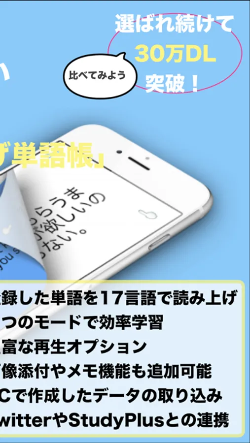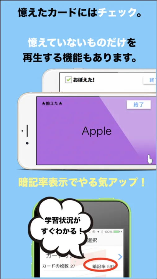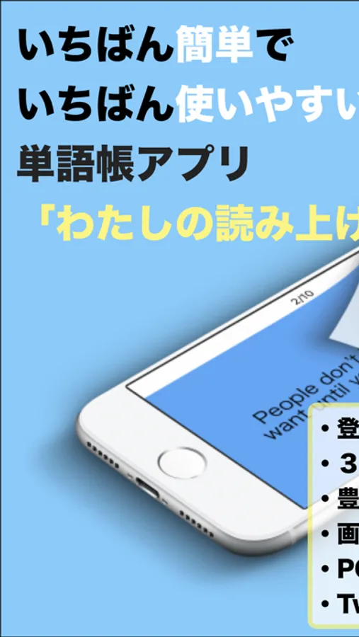 ただの単語帳ではありません。iPhoneが暗記をお手伝い。操作は簡単、聴いてめくって楽しく学習。